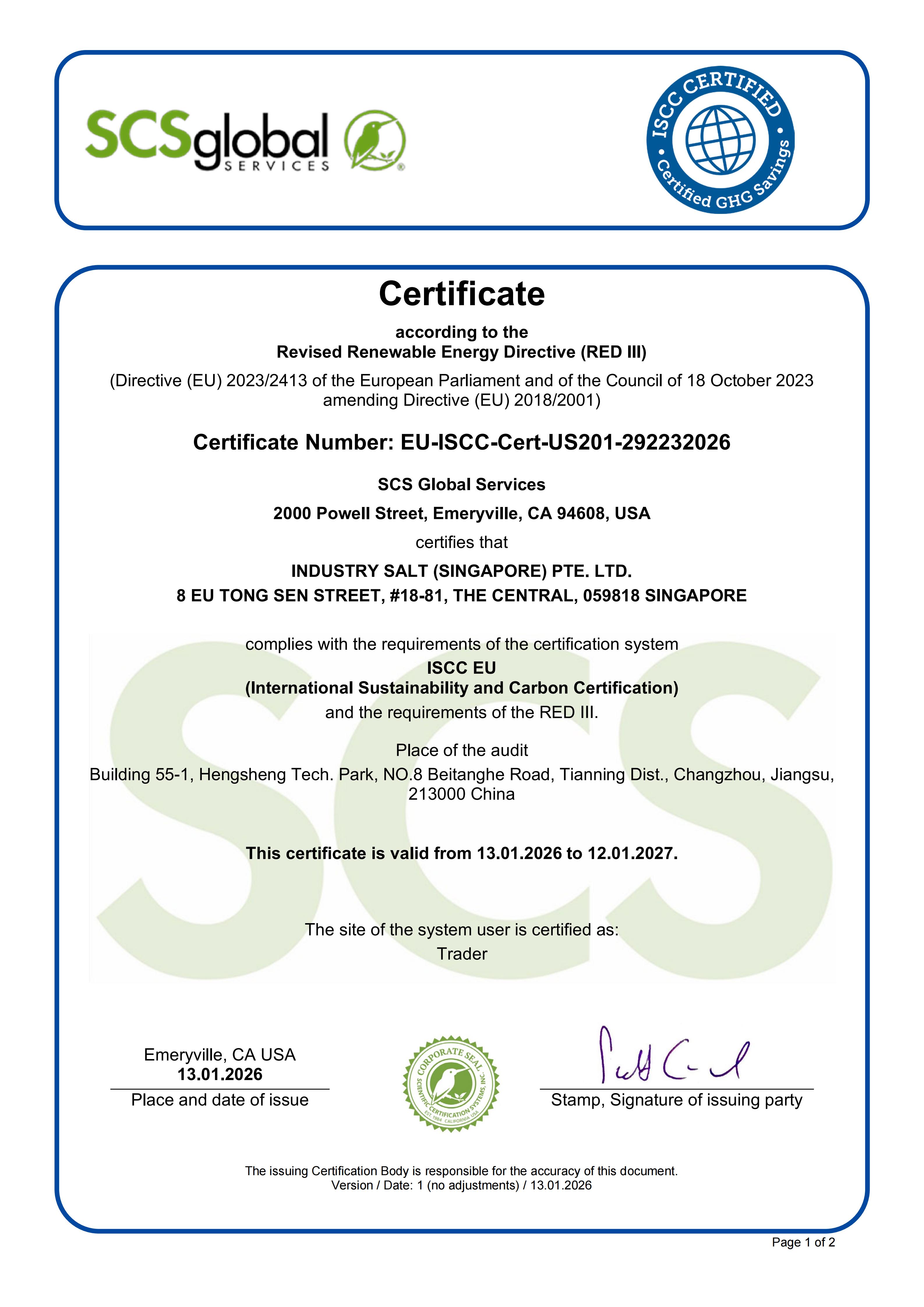 目前,我司及新加坡全资子公司经过ISCC EU标准的严格审核,均已获得ISCC EU绿色及碳排放认证证书。我公司已与BP公司、澳洲GrainCorp公司、国内嘉澳环保、山东三聚、蓝鲸生物、强林生物等知名生物燃料公司建立联系与合作,业务产品包括但不限于UCO、Tallow、HVO等。下一步,我司将在可持续环保生物燃料领域不断拓展市场,坚持绿色发展,减少碳排放,为绿色和可持续发展贡献力量。